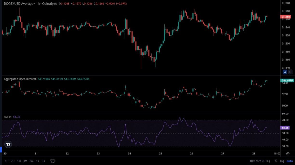 狗狗币的交易价格为 0.1256 美元,由于市场活动活跃,过去 24 小时内上涨了 3.73%。