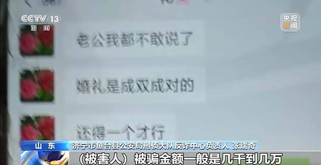 济宁市鱼台县公安局刑侦大队反诈中心负责人 张瑞奇:视频聊天收费一分钟几块到十几块不等,语音通话的费用一分钟是几块钱不等,然后文字是几毛到一块钱不等。女的开始给对方承诺,能跟你线下见面,将来能跟你结婚,甚至都开始以老公、老婆这种称呼来进行聊天。被骗金额一般是几千到几万,最多的是二十几万。
