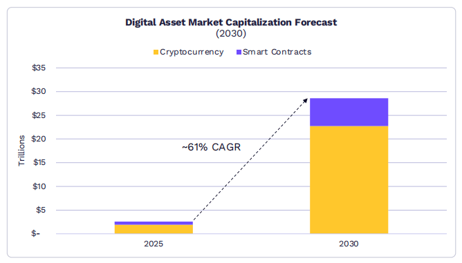 市场增长:报告指出,代币化资产市场预计将从2025年的190亿美元增长到2030年的11万亿美元。这为金融科技公司和区块链平台提供了巨大的市场机会。