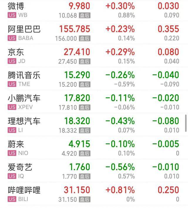中概股方面,纳斯达克金龙中国指数收跌0.04%,报7580.87点。文远知行收跌约4%,小马智行跌近0.9%,理想汽车跌0.4%,蔚来跌0.2%,小鹏汽车、万国数据跌0.1%,而拼多多涨超1%,百度涨近0.4%,阿里涨逾0.2%。