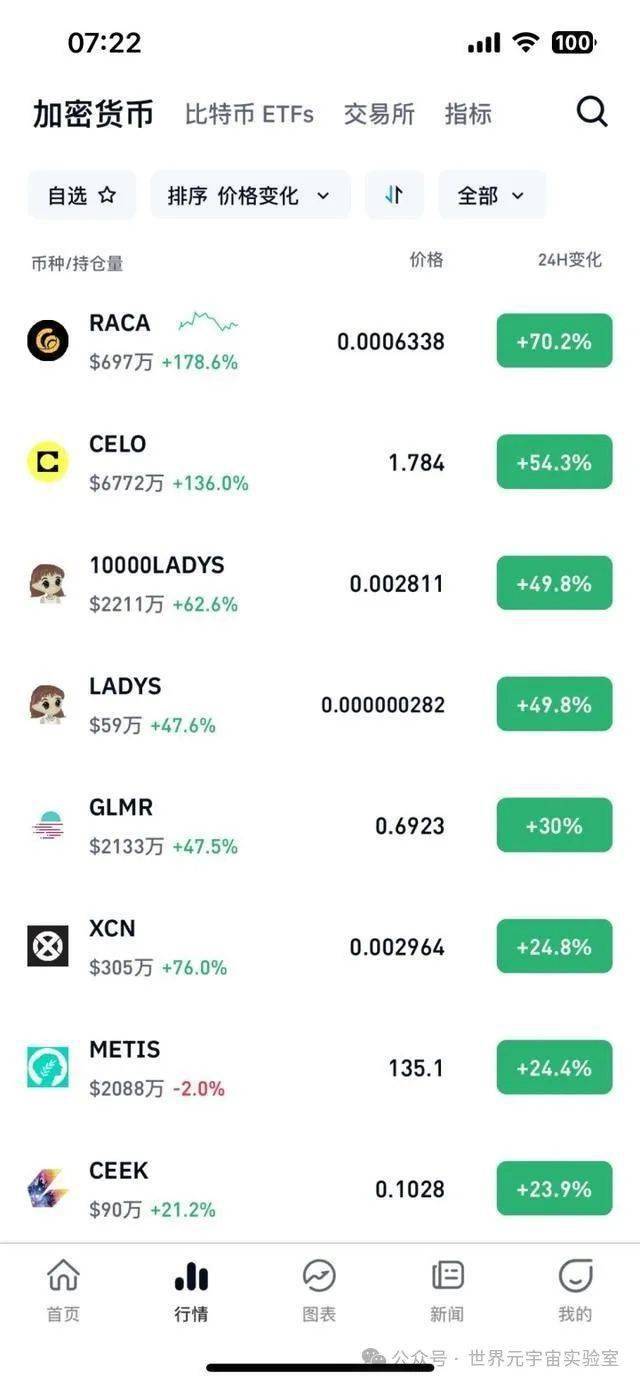 受到比特币行情上涨等因素,其他加密货币也呈现出上行趋势。以太坊上涨5.37%,raca上涨82%,celo上涨51%,共有30多种虚拟货币涨幅超过10%。