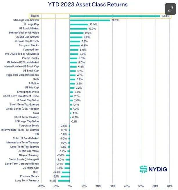 根据纽约比特币投资公司NYDIG的一份报告,这种特殊的表现已经超过了美国大盘股成长股(28%),美国大盘股(13%),债券,大宗商品和房地产投资信托基金的回报。