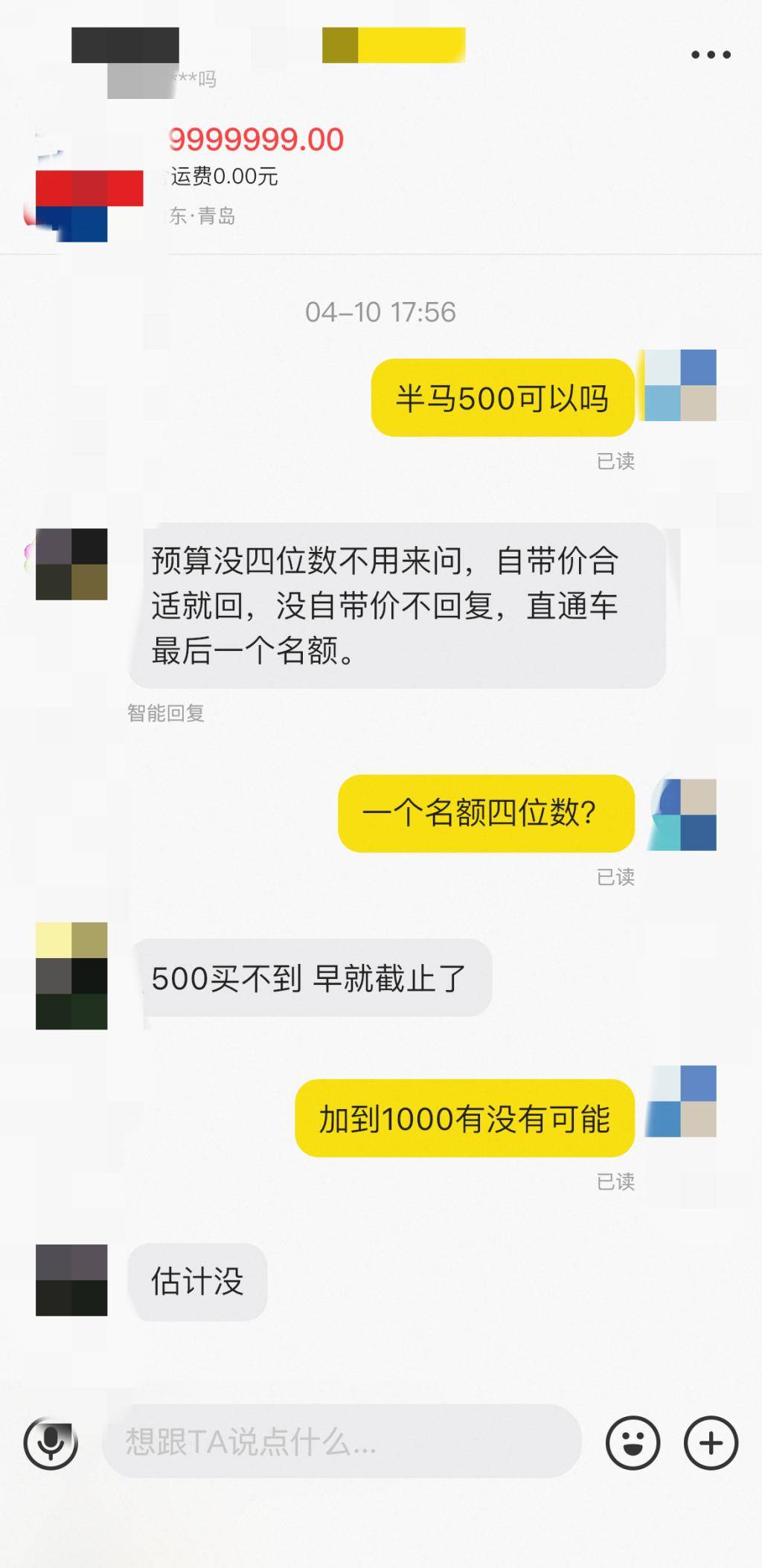 就徐先生发现的问题,记者也登录闲鱼搜索,输入关键词后,确实发现一些卖家在出售参赛名额,价格在几百元到几万元不等。记者随机咨询了其中一个卖家,询问500元能否成交时,对方表示:“预算没有4位数不用来问。”最终,当记者出价1500元时,对方才表示可以问一下,并让记者加其微信。