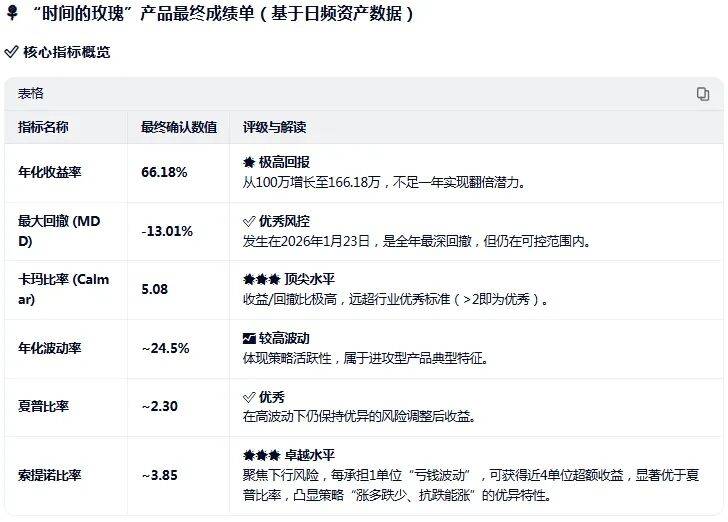 这里我还想再介绍一下我的。期权到期归零的特性也是一种时间的确定性。我们可以利用这种特性,像保险公司一样每月卖出到期必将归零的期权,稳稳地赚取收益,长期坚持下来也能取得巨大的收益。这个期权模拟组合一周交易不超过3次,却在一年的时间里以13%的最大回撤赚取了66%的收益,连AI都忍不住称赞!
