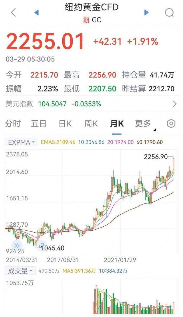 如果前两条路都走不通,那最后的办法就是让美元贬值。实际上,美元曾在1970年代经历过一次黄金美元的崩溃,转而依赖石油美元。如今,黄金期货价格突破2000美元每盎司并且保持稳定,这便是美元再次贬值的迹象。 美元贬值的路径有两种可能: 第一种是不可控的贬值,像俄罗斯和阿根廷那样一旦发生,美元将彻底失去全球货币霸权。 第二种是可控贬值,如同1970年代那次大规模的美元贬值,那个时期黄金价格大幅上涨,标志着美元体系的崩溃。这种情况下,我们作为世界第二大经济体,虽然在名义上已经是第一大,但是否配合美国的行动,依然取决于美国能拿出什么样的筹码。 顺便提一下,最近有个海归经济学砖家建议中国政府在2024年将CPI调控突破6%,同时放开楼市价格上涨,这种行为简直就是内奸的表现。 中国正稳坐钓鱼台,静待美国霸权的崩溃。我深信,2024年无疑将在世界历史上留下浓重的一笔。 金融行业的专业人员向来是全球市场上最聪明、最敏锐的一群人。从2024年3月上旬开始,黄金期货和数字货币市场的异动,充分体现了他们对美联储和华尔街在这场中美金融战中最终胜出的信心已经逐渐丧失。 我在之前的文章中提到过:美国在2018年正式将中国定为最强劲的竞争对手,随即将50%以上的军事力量部署到亚太地区,并开启了一场围绕中国的超限战。这场战争包括关税战、科技封锁战、宣传战、金融战等多方面的攻势。可是,出乎美国的预料,四年后的2022年,中国不仅没有受到致命的打击,反而在生化战中表现出色,导致美国反而遭遇了连串打击,甚至巴菲特也亲眼见证了美股的四次熔断。为了自救,美国不得不采取极端手段,利用美元的全球货币地位,通过无限量的QE政策转嫁危机。这样虽然暂时救了股市,但美国的国债却从此失控,总额已突破了34万亿美元,成为历史上最大的庞氏骗局。更严重的是,这种虚伪的繁荣激起了全世界人民的愤怒,反美情绪再也没有理由抑制。 自从1970年代美元与黄金脱钩后,黄金尽管失去了作为世界货币的地位,但始终是衡量美元内在价值的最佳标准之一。2020年,美联储再度开启印钞机,展开史无前例的无限放水,按理说黄金价格应当持续上涨。 从纽约黄金期货的月线图中,我们可以清晰地看到,尽管黄金价格曾三次突破2000美元每盎司并有所回调,但每次都被华尔街利用资金优势压制。现在已经是第四次,华尔街终于无法继续压制黄金上涨的趋势。这预示着金融市场中最敏锐的专业人士,已经到美联储可能会开始降息,美元贬值的周期即将来临。 不过,这一切是否会如预期般发生,还取决于当前全球政治和军事博弈的进展。 数字货币的上涨逻辑与黄金有些类似。需要注意的是,数字货币市场的背后有两条主要逻辑: 第一,数字货币最初的诞生是为了满足全球范围内的洗钱需求。通过这种方式,见不得光的资金得以转移。
